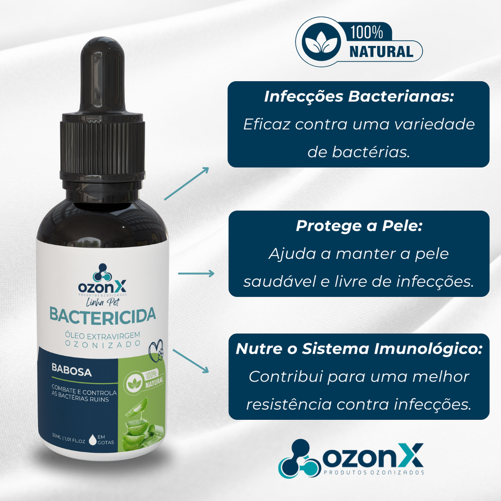 Tenha um suplemento natural às infecções bacterianas e dê ao seu pet a proteção que ele merece com o Óleo de Babosa Ozonizado da OzonX / Coleção ozonPET!