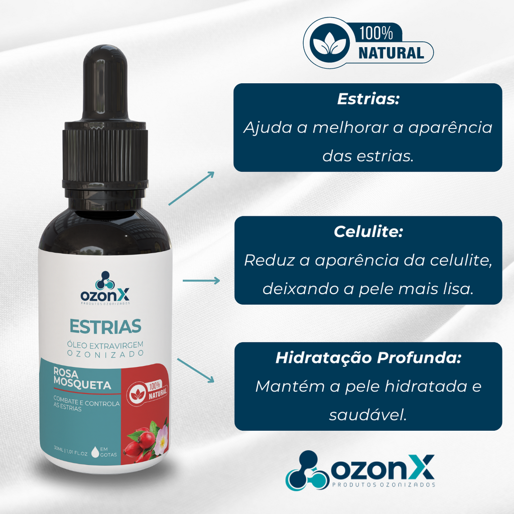 Apresentamos o Óleo de Abacate Ozonizado da OzonX, uma poderosa solução natural e suave para combater estrias e celulite. Desenvolvido com cuidado e carinho, este óleo oferece um conforto instantâneo, ajudando a reduzir as marcas indesejadas e promover uma pele mais firme e uniforme.