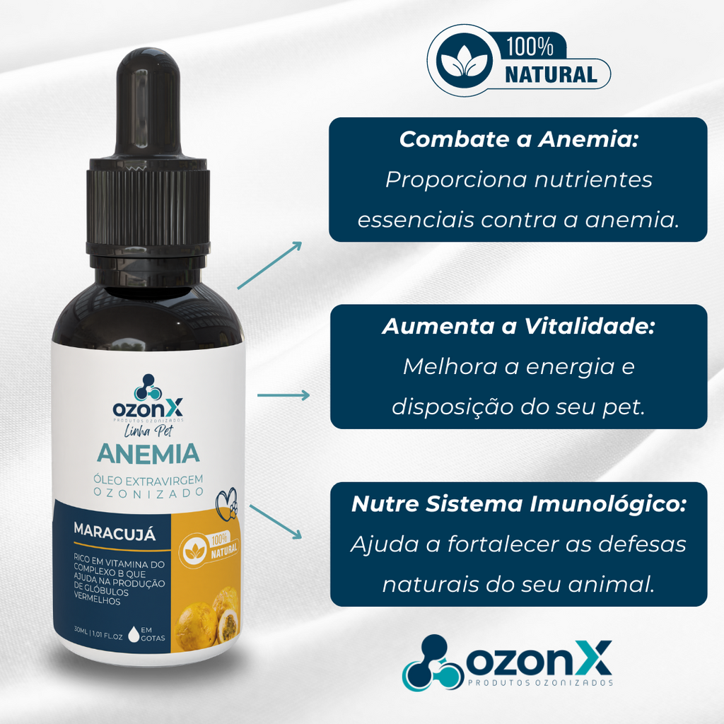 Apresentamos o Óleo de Maracujá Ozonizado da OzonX / Coleção ozonPET, uma solução natural e suave para combater a anemia e nutrir seu animal. Desenvolvido com todo o carinho, este óleo oferece suporte essencial para manter a saúde e vitalidade do seu pet.