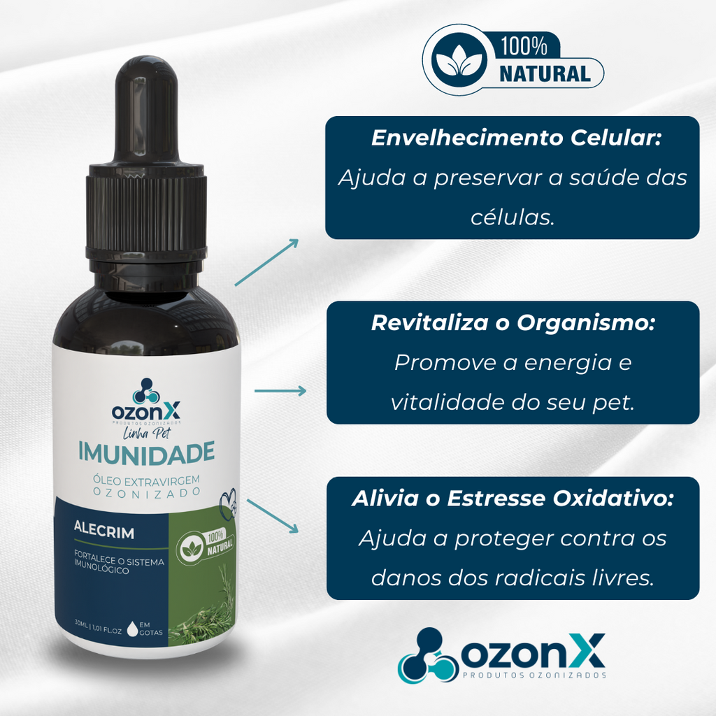 Apresentamos o Óleo de Alecrim Ozonizado da OzonX / Coleção ozonPET, uma solução natural e suave para combater o envelhecimento celular e revitalizar seu pet. Desenvolvido com todo o carinho, este óleo oferece suporte essencial para manter a vitalidade e bem-estar do seu animal.