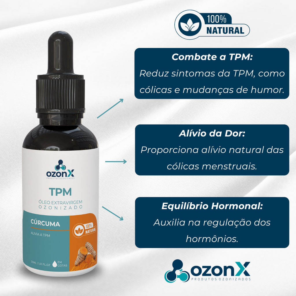 Tenha um suplemento natural aos sintomas da TPM e tenha um ciclo menstrual mais confortável e equilibrado com o Óleo de Cúrcuma Ozonizado da OzonX!