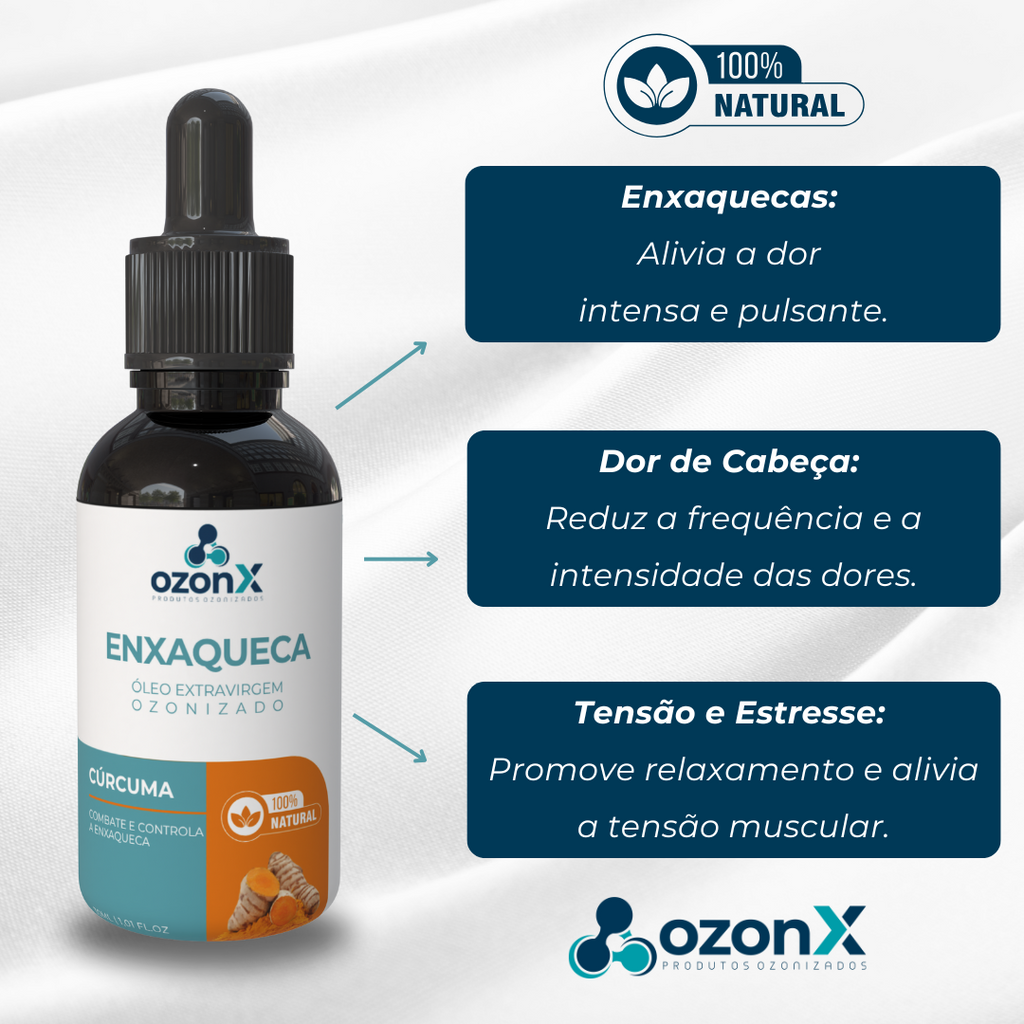 Apresentamos o Óleo de Cúrcuma Ozonizado da OzonX, uma solução natural e poderosa para reduzir e aliviar as enxaquecas. Desenvolvido com cuidado e carinho, este óleo oferece um conforto instantâneo, ajudando a combater a dor de forma eficaz.