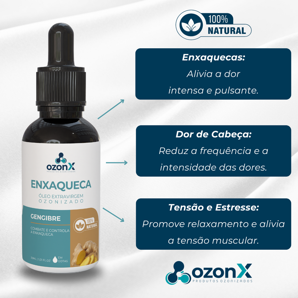 O óleo de gengibre é conhecido por suas propriedades anti-inflamatórias e analgésicas, ajudando a reduzir a dor e a inflamação associadas às enxaquecas. O ozônio potencializa essas propriedades do gengibre em até 200%, imagina o poder desse óleo!