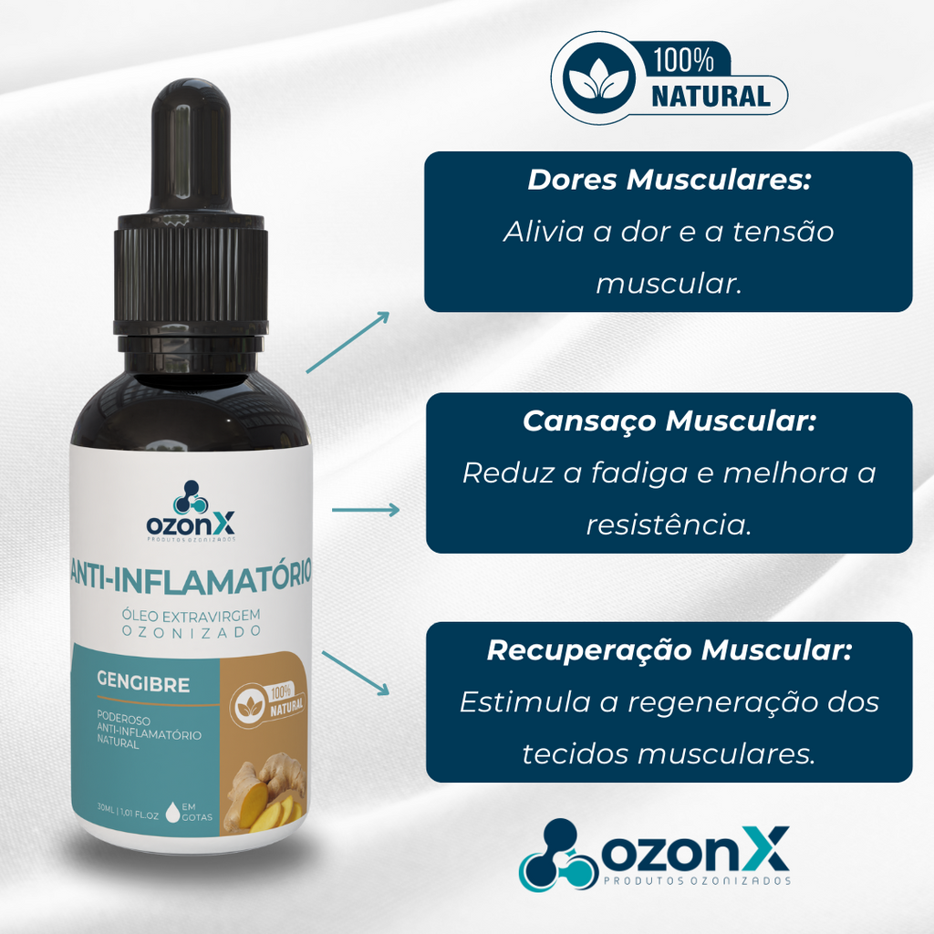 O óleo de gengibre é conhecido por suas propriedades anti-inflamatórias e analgésicas, ajudando a aliviar a dor e a promover a recuperação muscular. O ozônio potencializa essas propriedades do gengibre em até 200%, imagina o poder desse óleo!