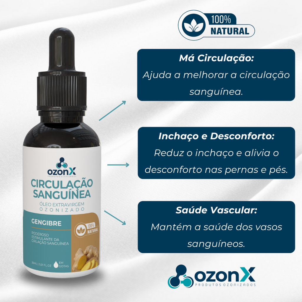 Tenha um suplemento natural aos problemas de circulação, dê ao seu corpo o cuidado que ele merece com o Óleo de Gengibre Ozonizado da OzonX!