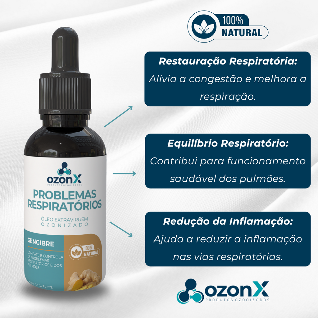 Apresentamos o Óleo de Gengibre Ozonizado da OzonX, uma solução natural e eficaz para restaurar e equilibrar a saúde respiratória. Desenvolvido com cuidado e dedicação, este óleo oferece um alívio imediato, promovendo a saúde respiratória de forma segura e natural.