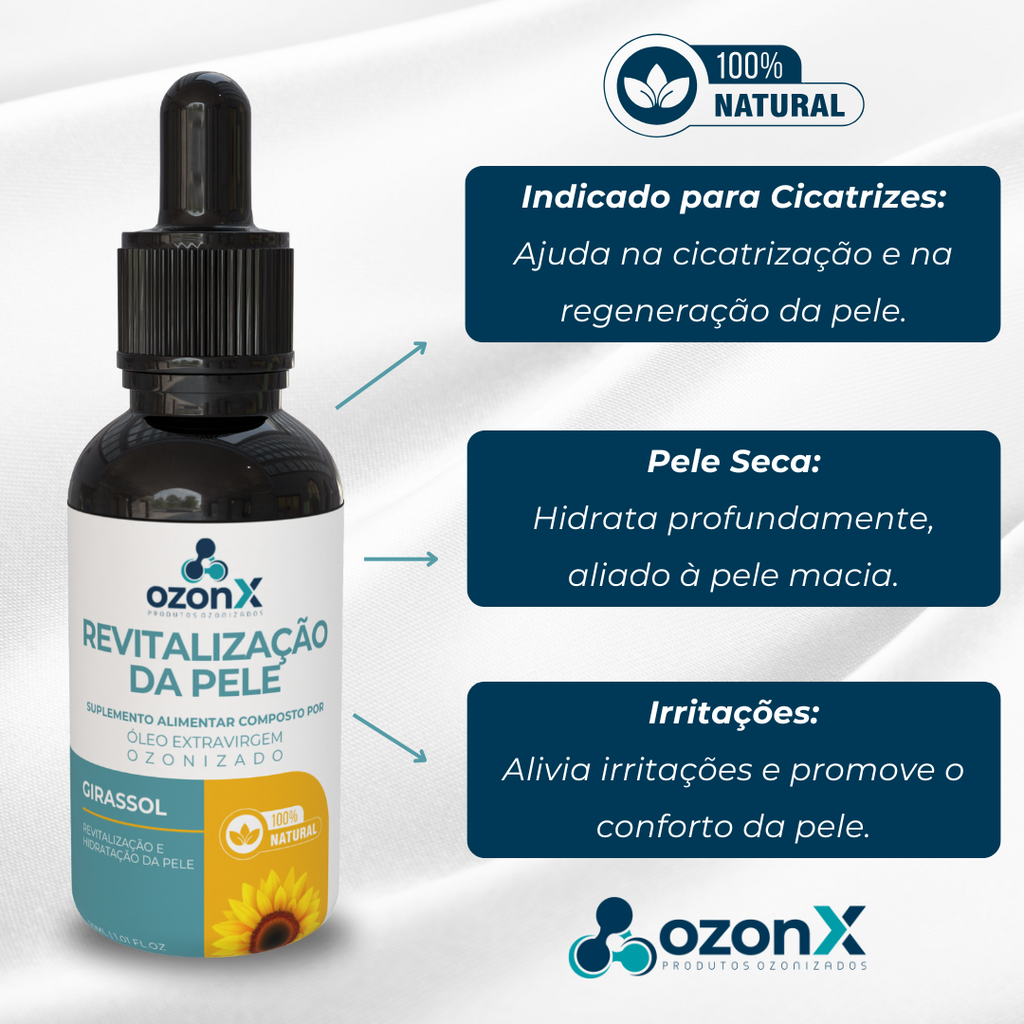 Apresentamos o Óleo de Girassol Ozonizado da OzonX, uma solução suave que auxilia no cuidado e hidratação da pele fragilizada. Desenvolvido com todo o cuidado, este óleo natural oferece suporte à regeneração cutânea, ajudando a revitalizar a aparência da pele e promovendo uma sensação de bem-estar.