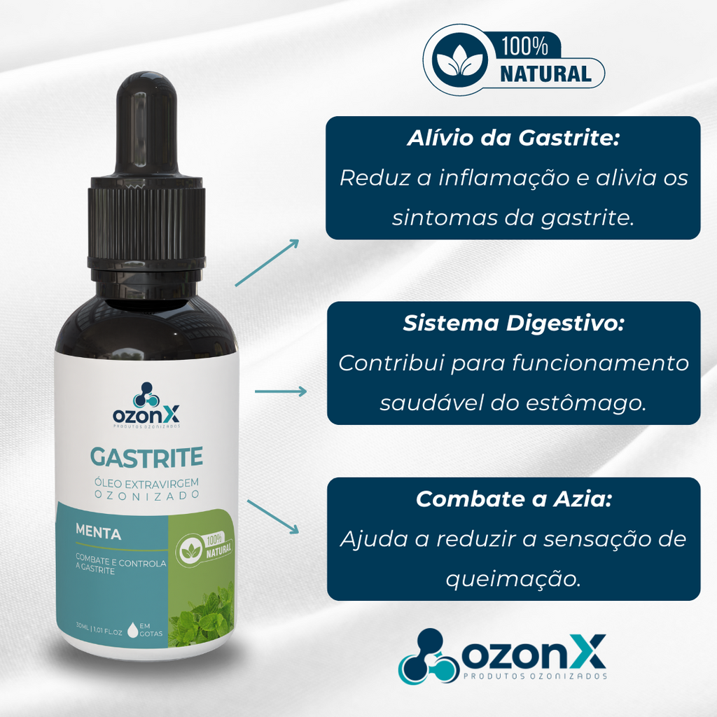 Tenha um suplemento natural aos desconfortos da gastrite e dê ao seu sistema digestivo o alívio e a saúde que ele merece com o Óleo de Menta Ozonizado da OzonX!