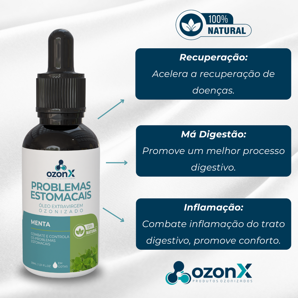Tenha um suplemento natural aos desconfortos estomacais e fortaleça sua saúde digestiva com o Óleo de Menta Ozonizado da OzonX!