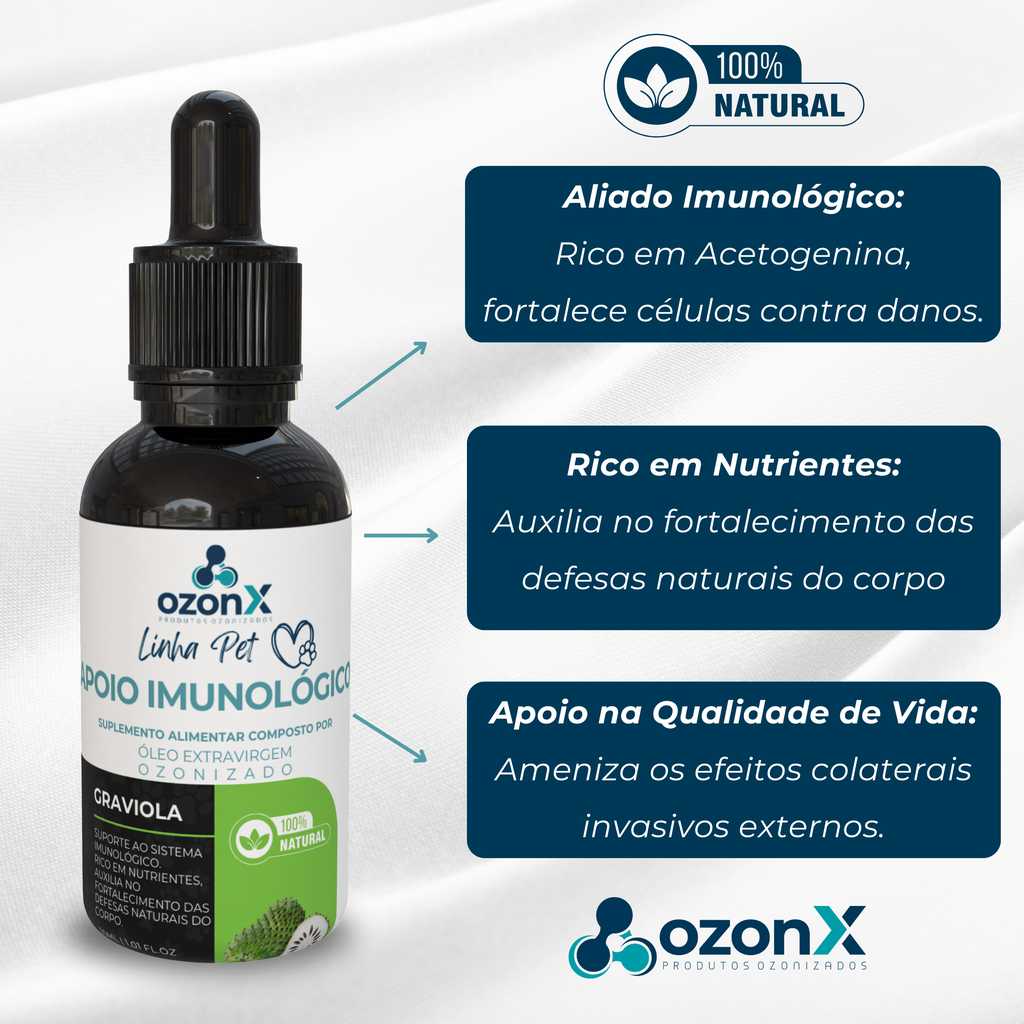Apresentamos o Óleo Premium de Graviola Ozonizado da OzonX, uma solução natural desenvolvida com todo o cuidado e carinho para promover o bem-estar geral do seu companheiro de quatro patas. Este óleo oferece suporte ao sistema imunológico e contribui para a vitalidade e equilíbrio do organismo do seu pet.